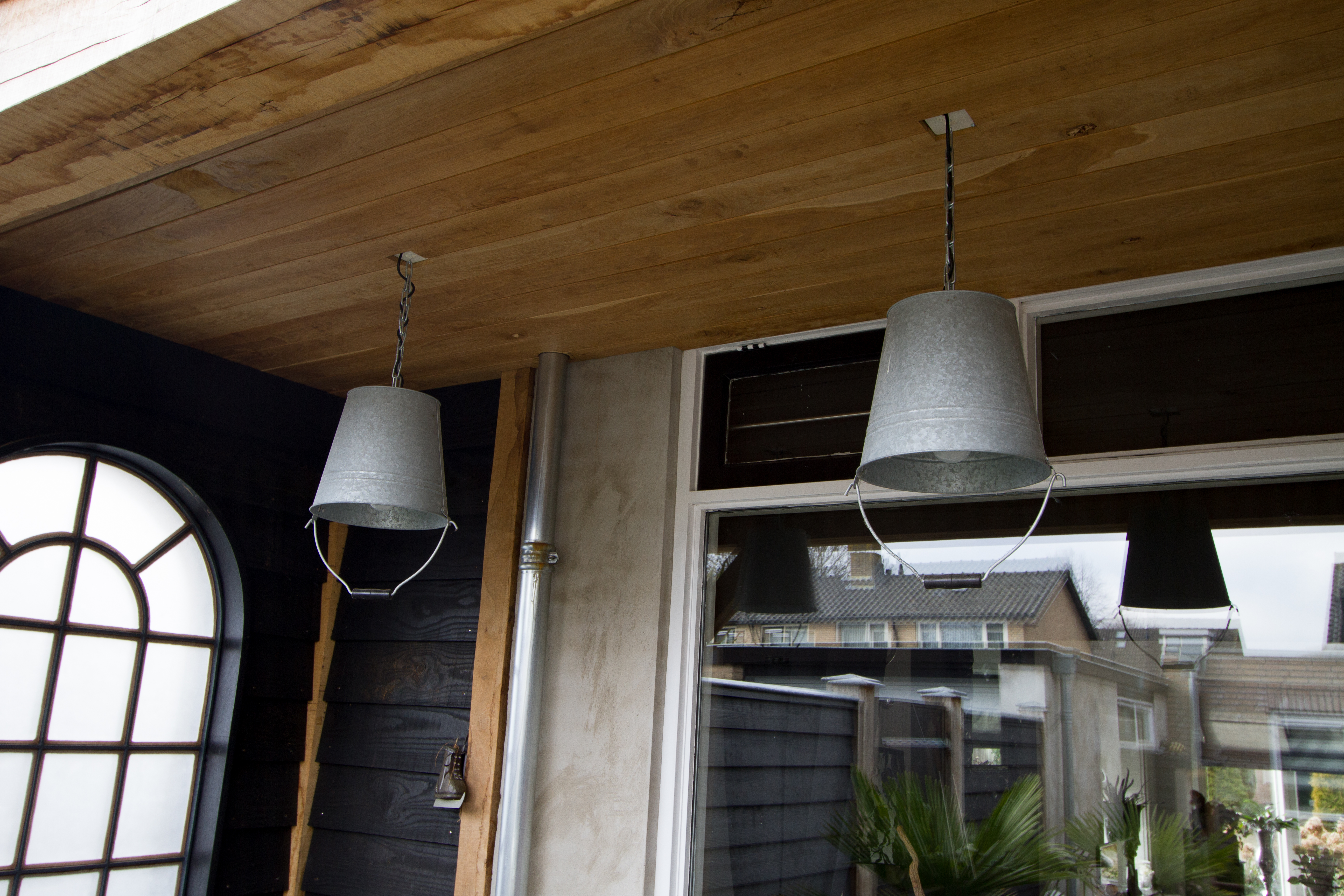 Op maat gemaakt rek voor melkbussen. Van massief eikenhout met een nostaligisch en rustieke uitstraling.